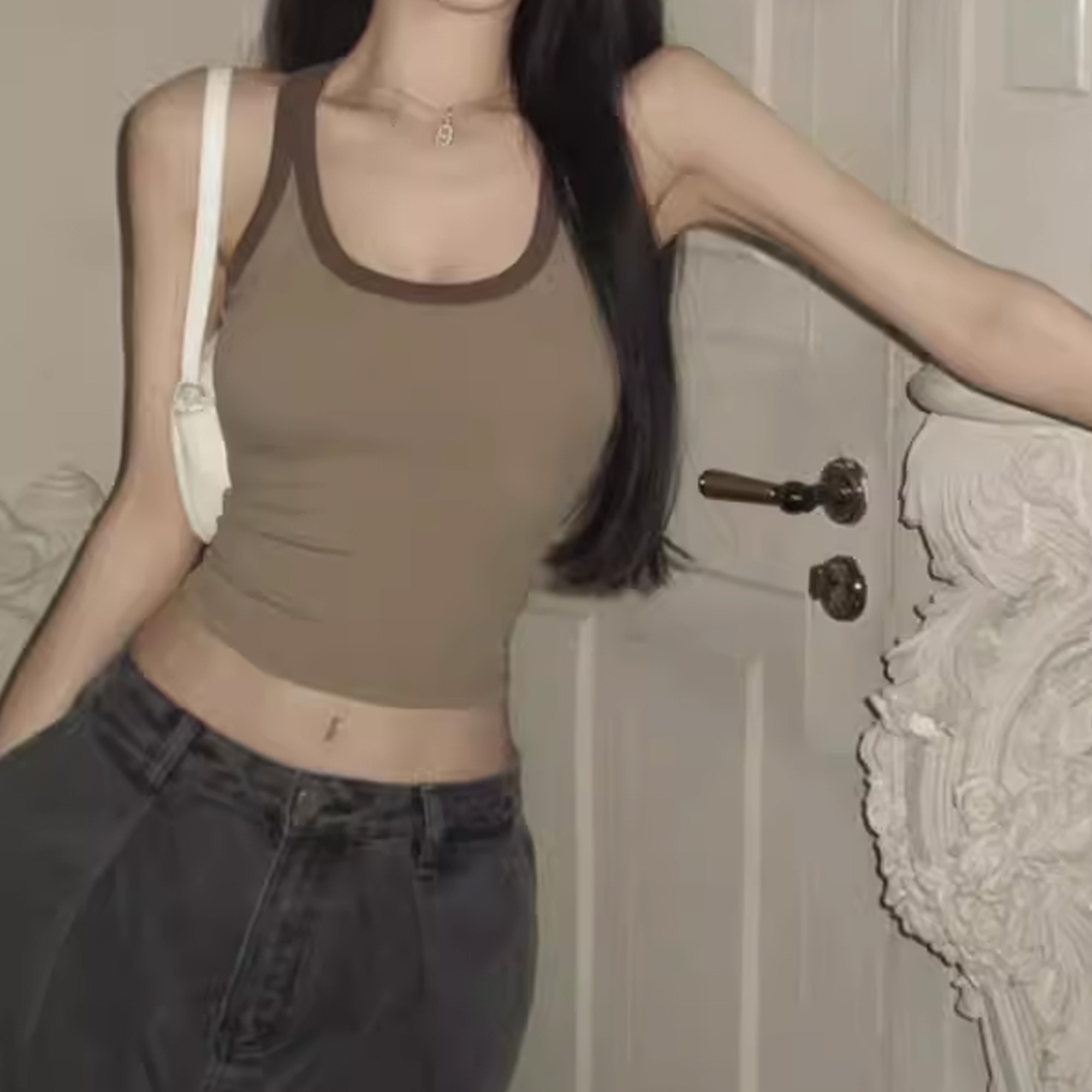 Missgirl-Vests,Womens Cotton Ribbed Square Neck Tank Tops Basic Backless Sleeveless Summer Cami Shirts.